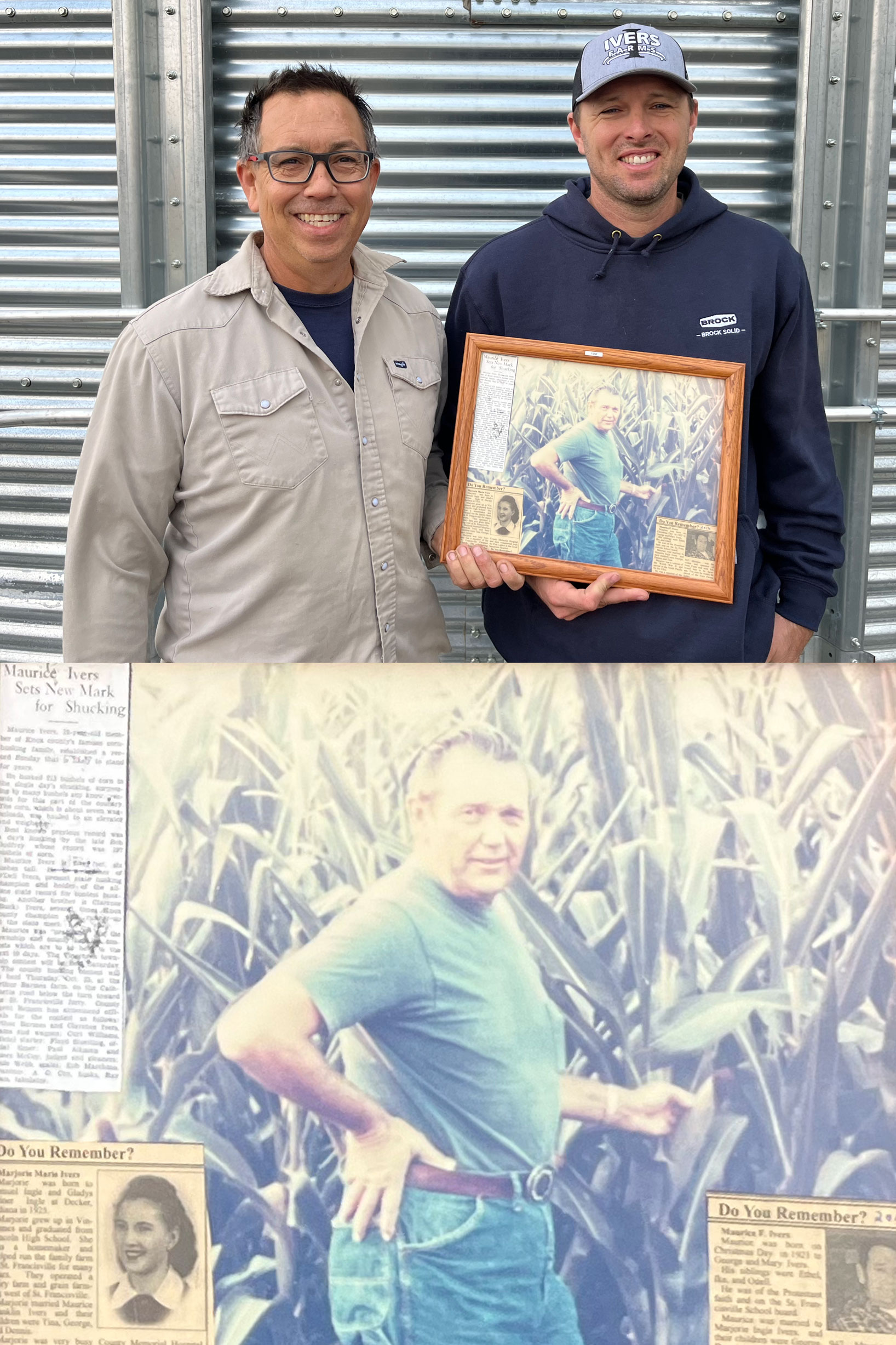 These days, the Ivers harvest up to 5,000 bushels of corn an hour. But back in 1940, Reese’s grandfather, Maurice Ivers, husked 213 bushels of corn by hand in one day to win the Indiana corn-shucking competition. His effort filled seven wagons, surpassing all previous records. So you could say that corn husking runs in the family. Reese works alongside his dad Dennis, uncle George, brother Garrett, and cousin David. They are the third and fourth generations to farm in Illinois and Indiana starting in 1938.